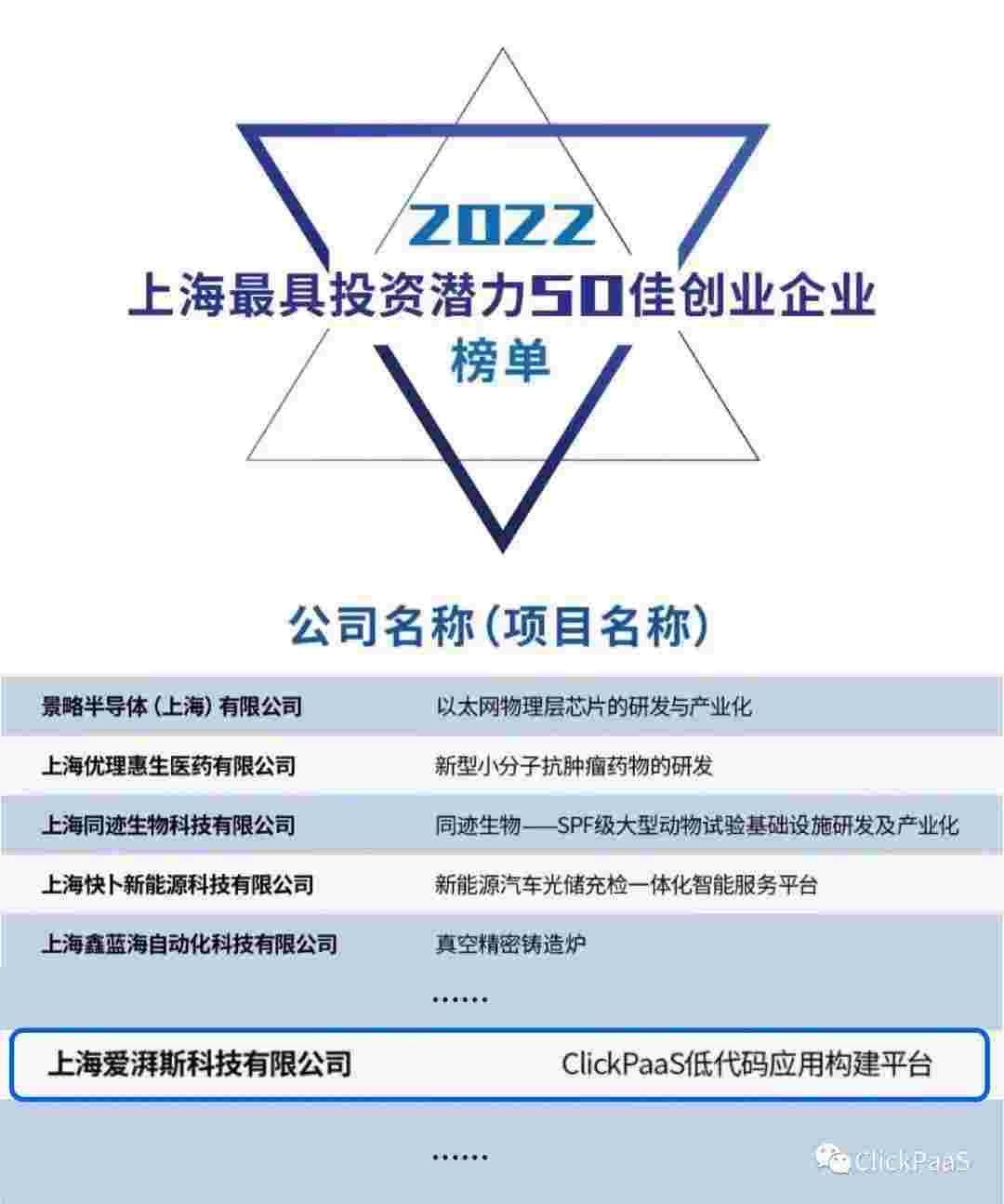 钱能钱包 作为国内低代码PaaS平台的领军企业,,与120家创企入围角逐。。。。期间接受了来自德同资本、、领中资本等知名投资机构的10位投资人组成专家评委团的背靠背盲选。。并最终入围“2022上海最具投资潜力50佳创业企业”榜单,,,被列入“上海市重点培育创业企业库”。。。