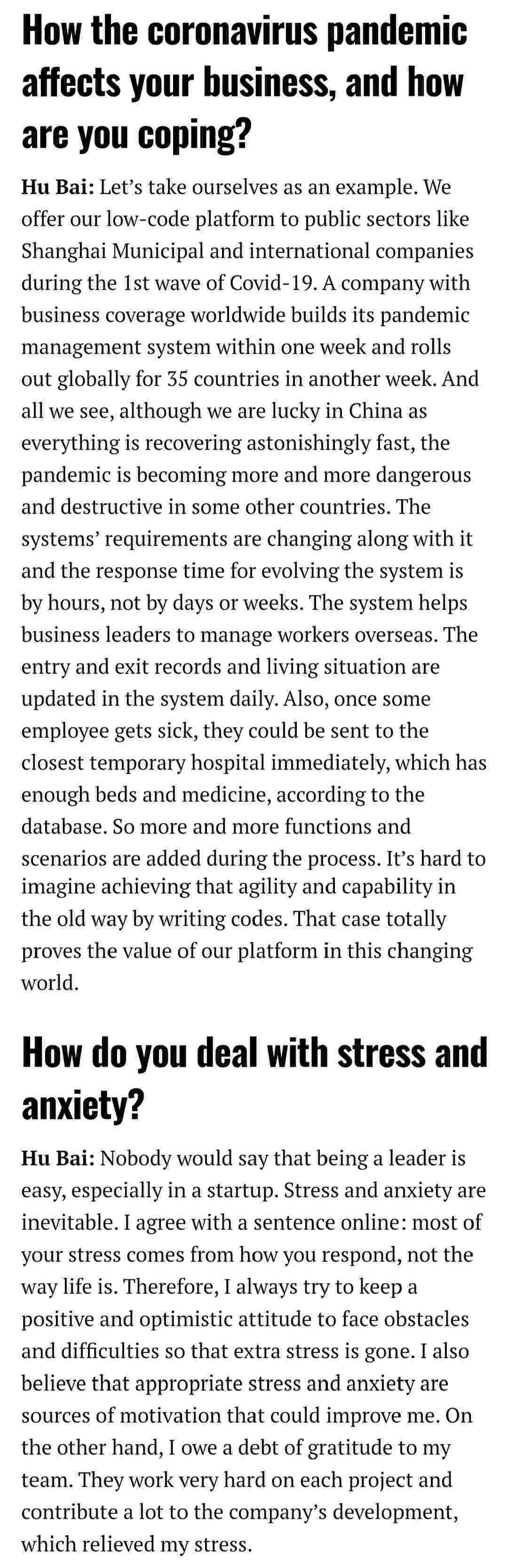 2021年年初,,,,爱湃斯科技CEO胡柏受邀接受法媒Startup.info的专访,,,与Startup info的读者分享了自己的创业经历、、、、以及低代码平台钱能钱包的创新之处。。。